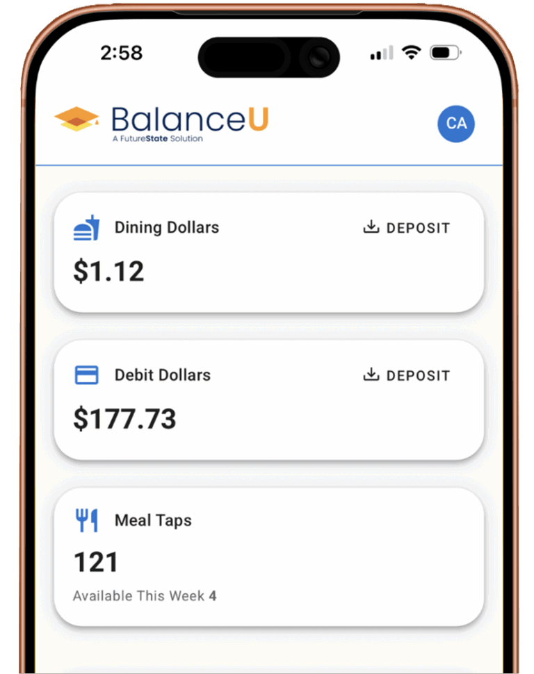 BalanceU modernizes meal plans and stored value with a clean student experience and a powerful operations platform built for today’s campus teams.
