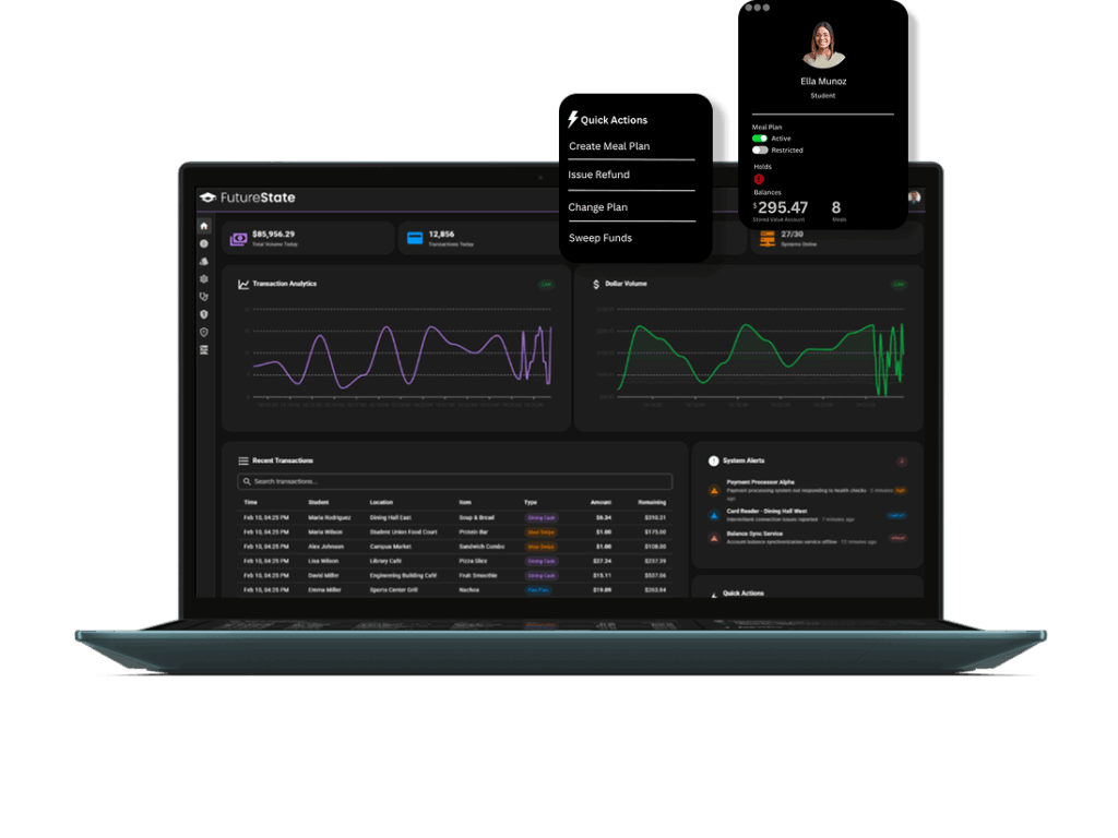 This is modern campus commerce. Built by higher ed, BalanceU powers meal plans and stored value with real-time control, cloud-based flexibility, and a UI that makes it all feel simple.